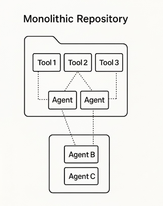 Больше нет необходимости хранить всё в одном монолите. Репозиторий можно разделить на независимые компоненты — агенты, инструменты, библиотеки. Это уменьшает риск конфликтов, упрощает обновления и делает кодовую базу прозрачной.